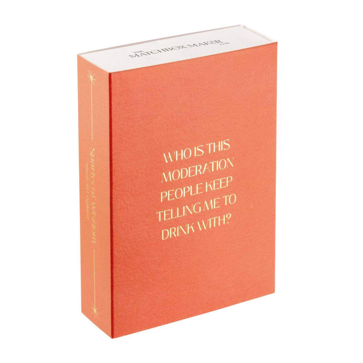 A quote is such a wonderful thing, they can make you cry, make you think, make you laugh out loud, we have put a few of our favourites on a range of funny, toungue and cheek matchboxes. People keep telling my husband to ‘drink with moderation’, to which is always replies, who is this moderation chap people keep telling me to drink with, is he fun! It has sneaked into the range as a nod to him and his endless support when launching our little business venture!
