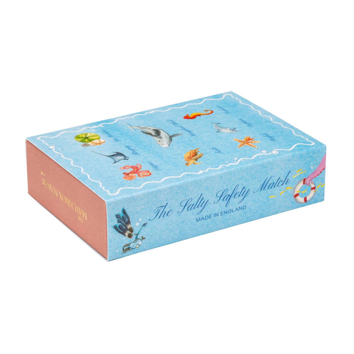 With such a wonderful portfolio of artwork we wanted to find a way of incorperation a selection of Clementinas desgins in one. With a nod back to the Eye Spy books of my childhood holidays we created these ‘look book’ match boxes adored with beautiful sketches. The Salty Sea Matchbox was so much fun to create and even when your are by the sea or longing to be beside it this matchbox is there to remind you of the wonders of the deep.